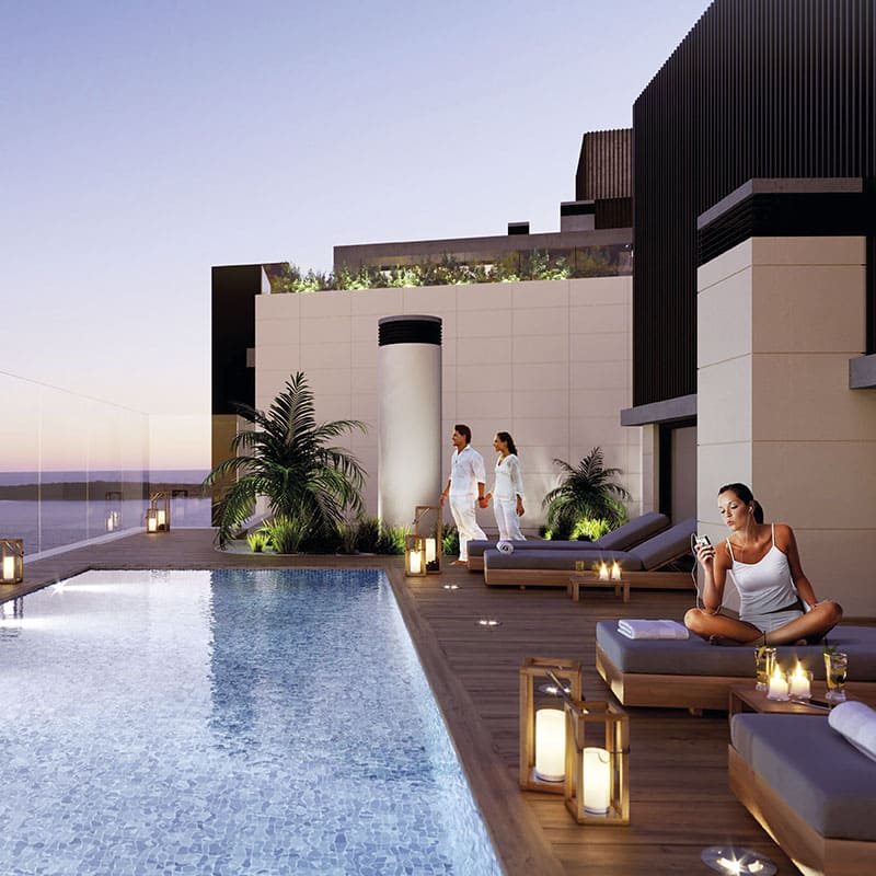 Nuestra increíble piscina climatizada está ubicada en el rooftop ofreciendo hermosas vistas de la playa.